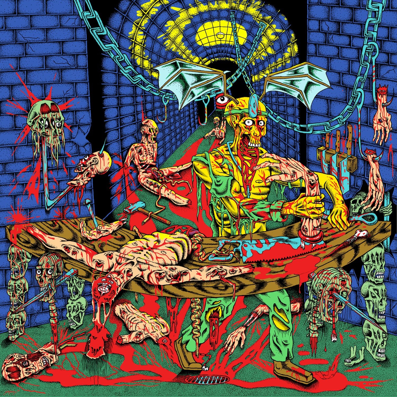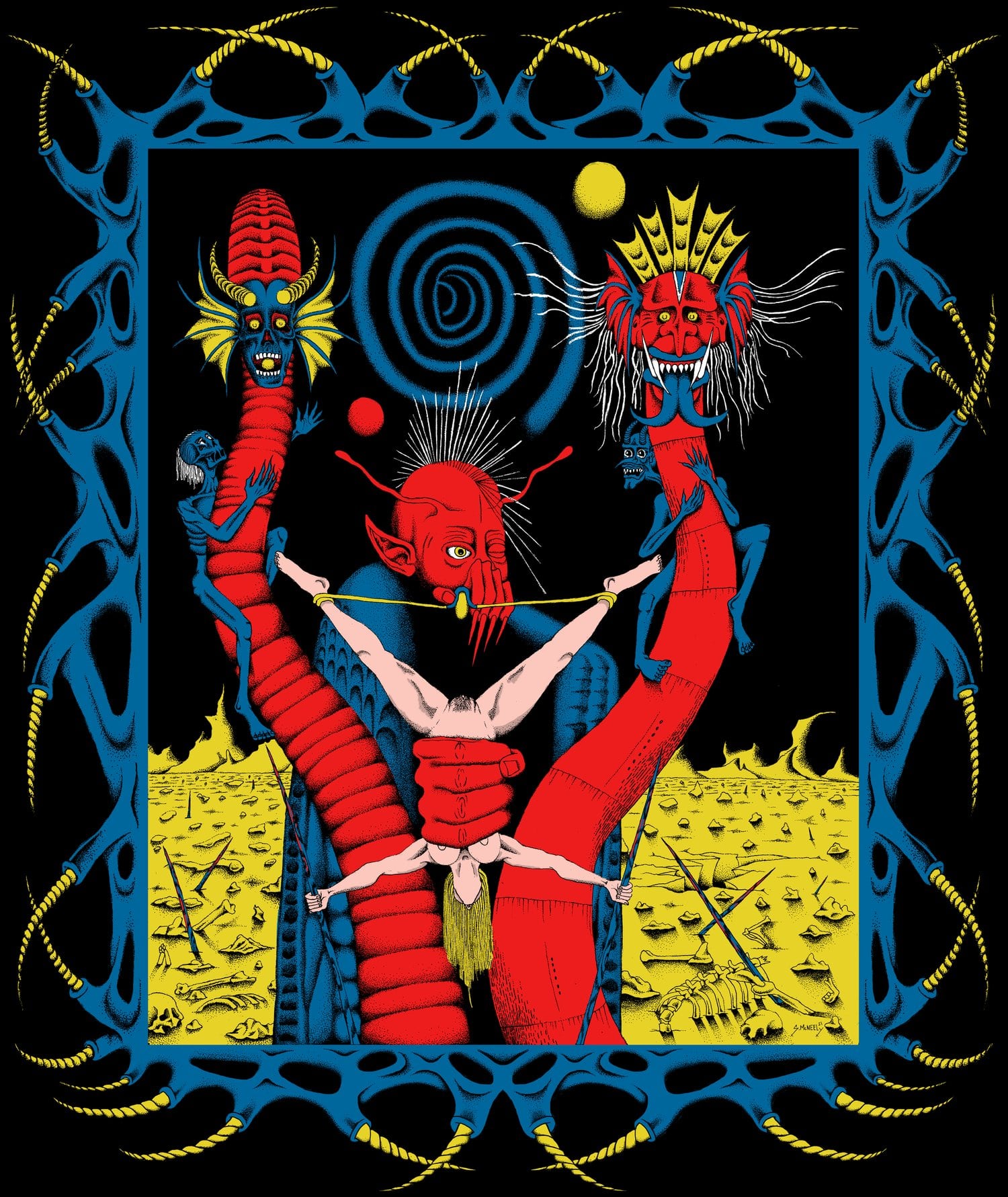 From the crazy mind of Stephen McNeely comes one of the hardest designs you will ever see. The torso jersey is the definition of CATACOMB. Severed torso, dismembered limbs, decapitated head, all infested with worms and maggots. Not for the faint of heart, not that this design has one anymore.